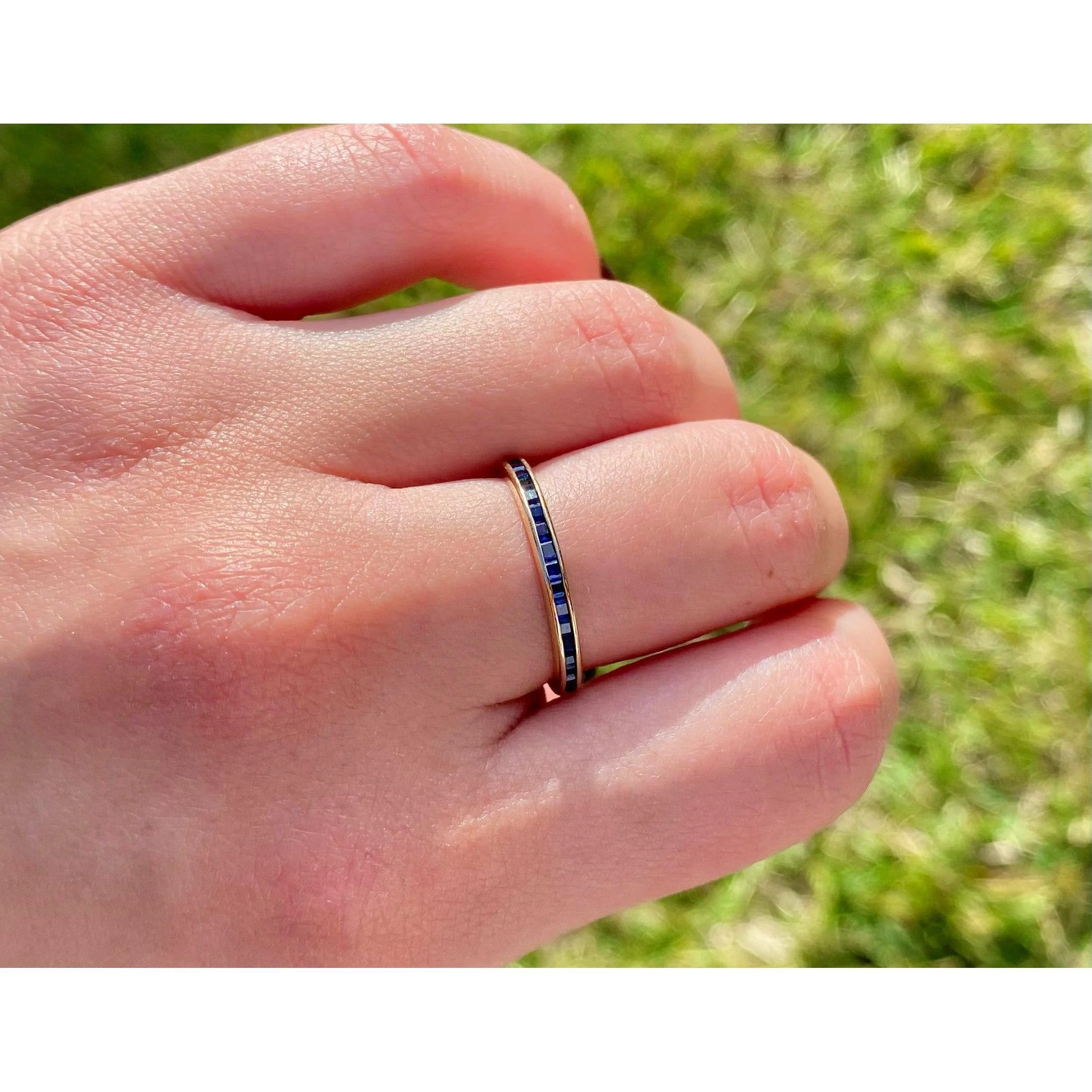 Infinity bands celebrate love and commitment, and this beautiful natural Sapphire infinity band square cut deep blue Sapphires are a perfect complement to any engagement ring. Idea for stacking or wearing alone.