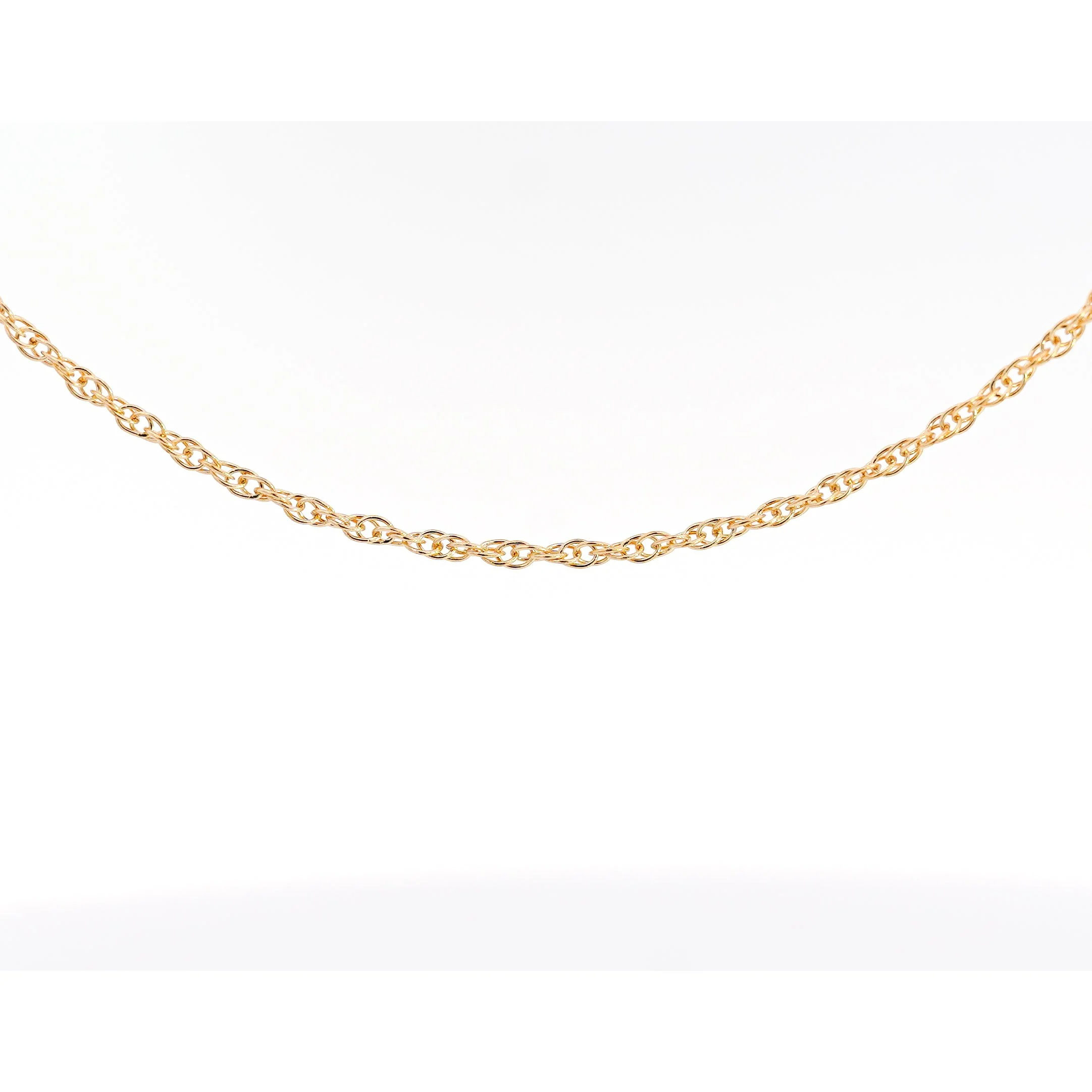 14K solid yellow gold rope chain necklace. Multi-linked cables form a rope chain design. Made with extremely durable soldered links made to last a lifetime. Making this the most durable rope chain at the 1 and 1.5mm width in the market.