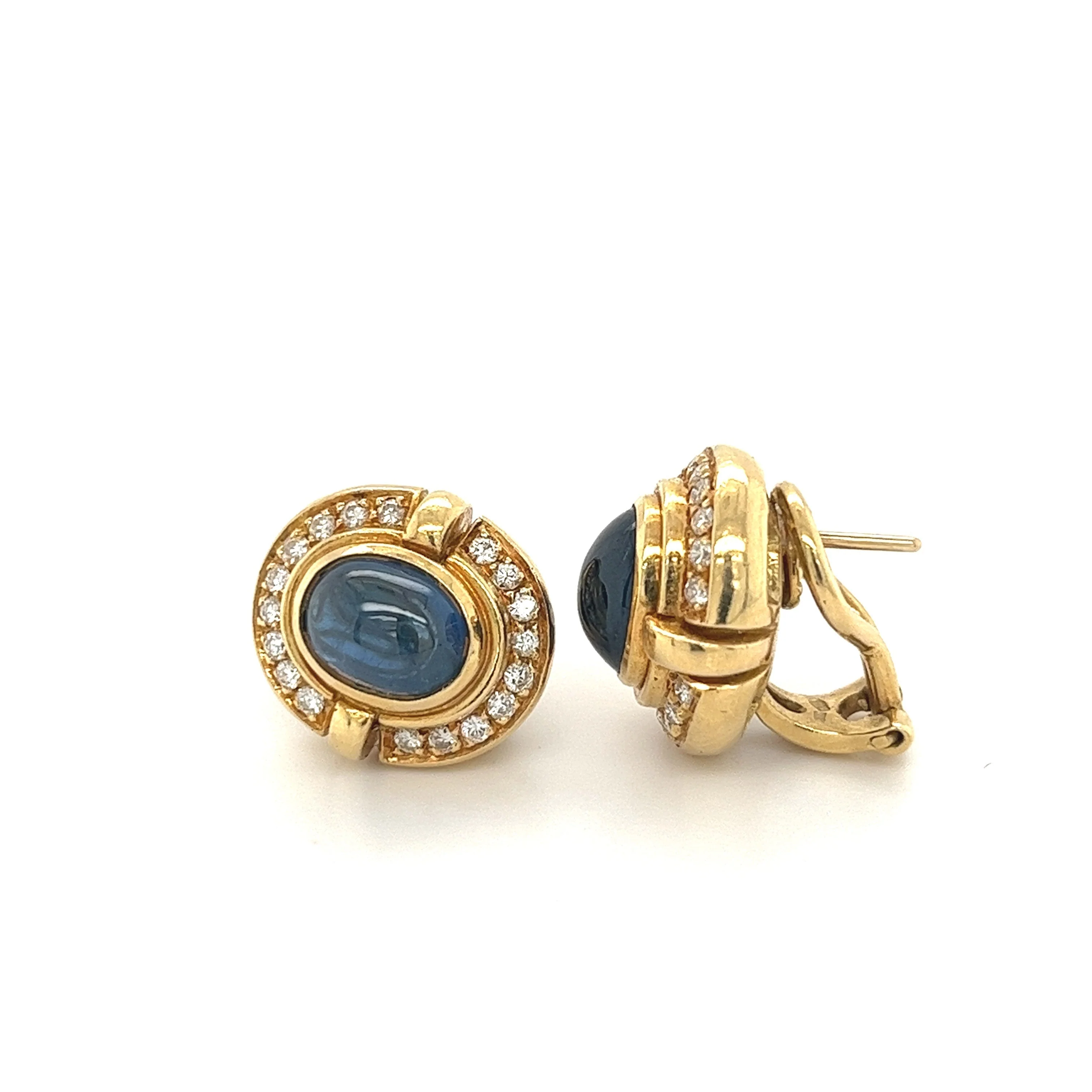 -70%7 carat Cabochon Blue Sapphire Lever Back Stud Earrings in 18K Gold—