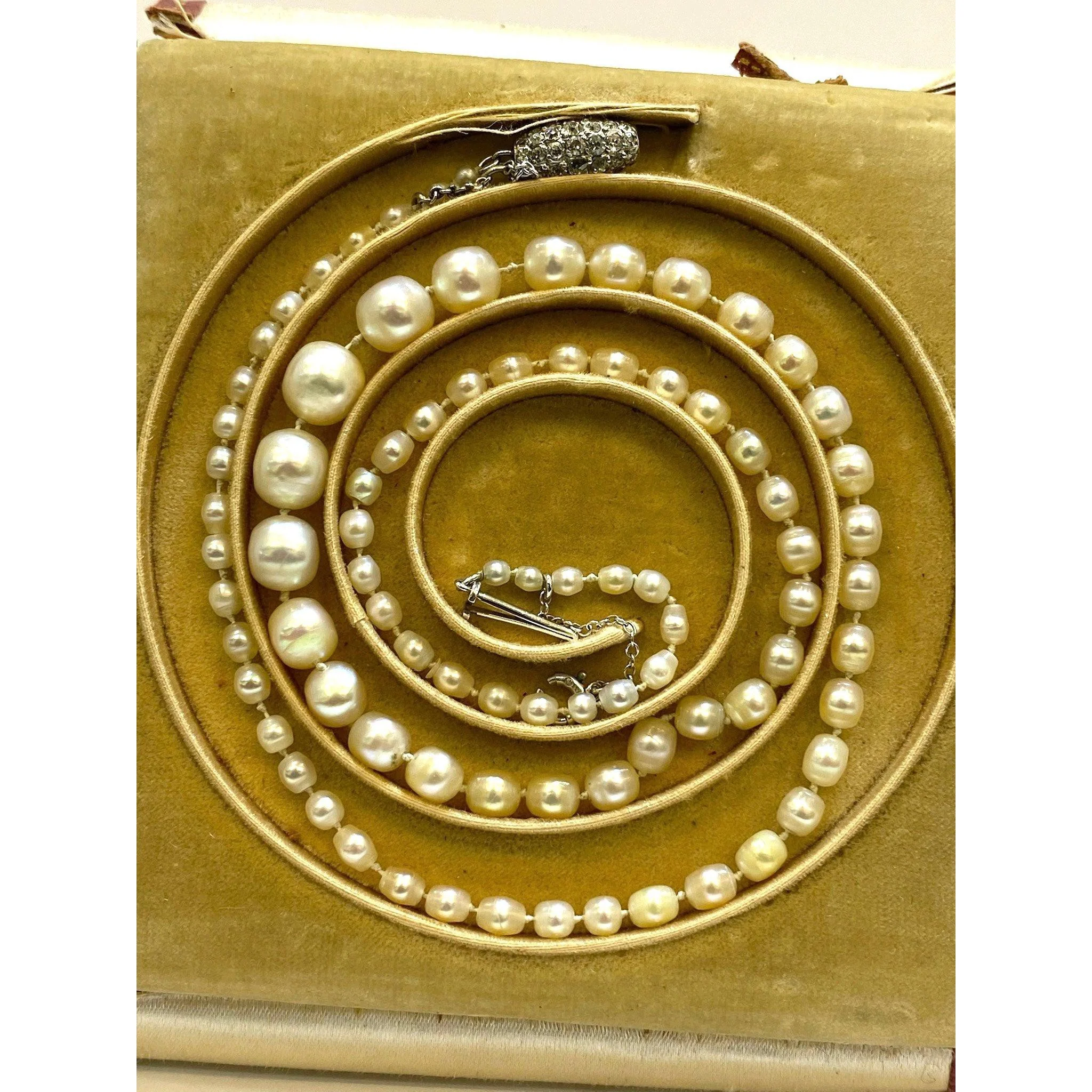 GIA Certified Antique Cartier Salt Water Pearl Necklace with Original Box