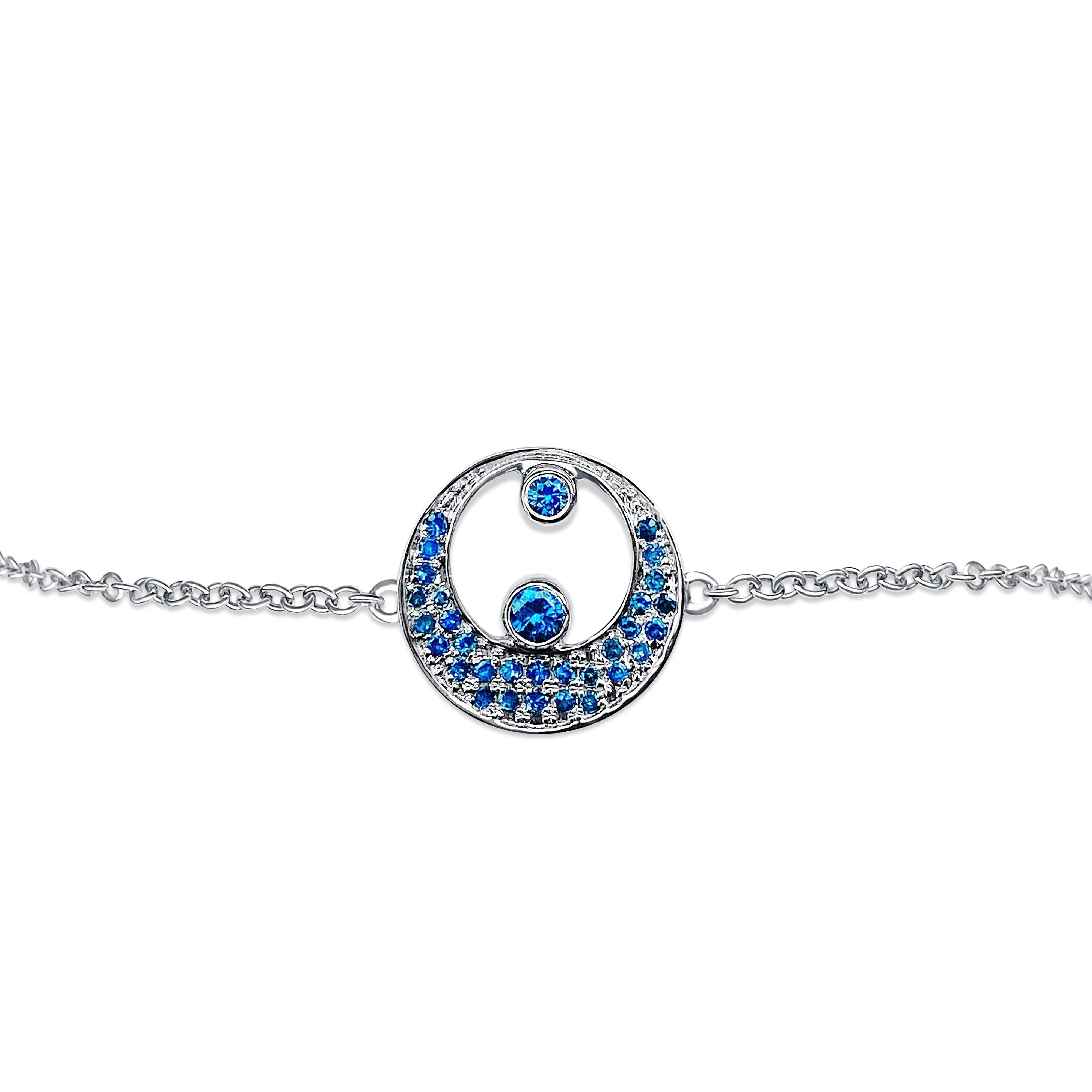 A crescent moon and a star has been a symbol of sacred dimensions since ancient times, and its been associated with pleasant and whimsical dreams. What better way to attract hope and wishes than with this beautiful and chic natural blue diamond bracelet, mounted on 18K white gold, this is a bracelet you can keep always on and will last a lifetime. Bracelet sits gracefully on the wrist and is just gorgeous.