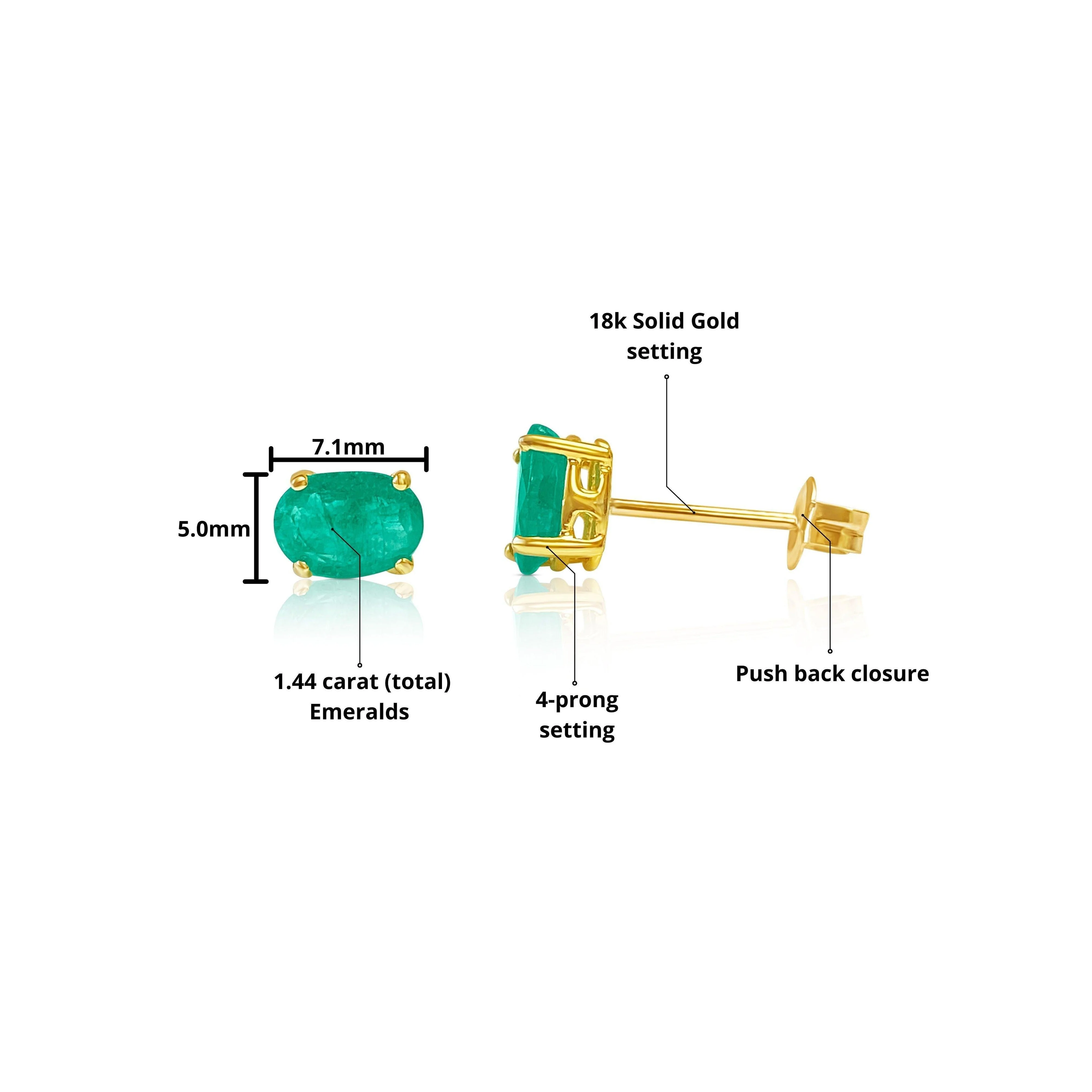 Oval Cut Natural Emerald Stud Earrings in 18k Solid Gold