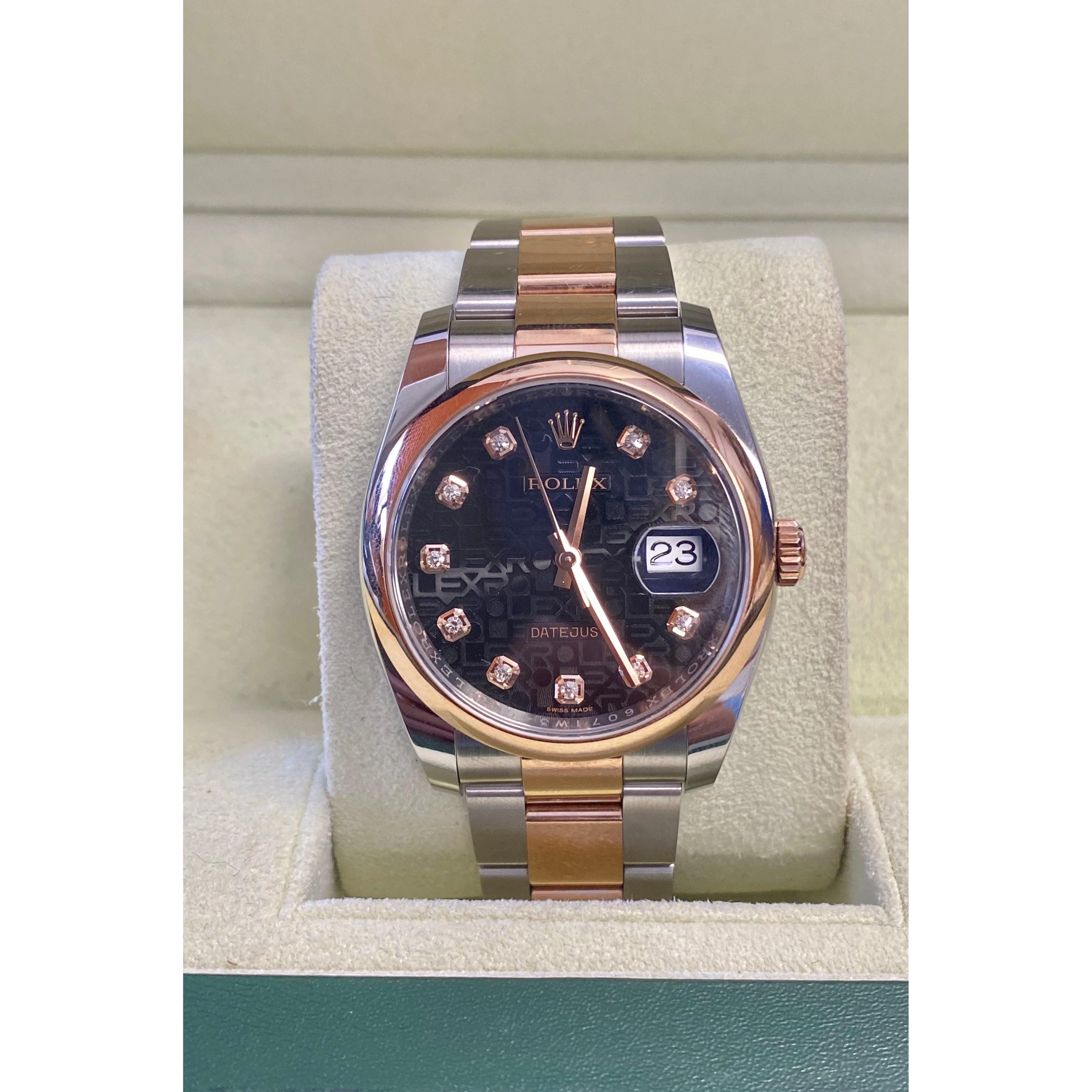 Rolex Datejust 36mm Dial and Jubilee Black Dial with Diamond Hour Markers