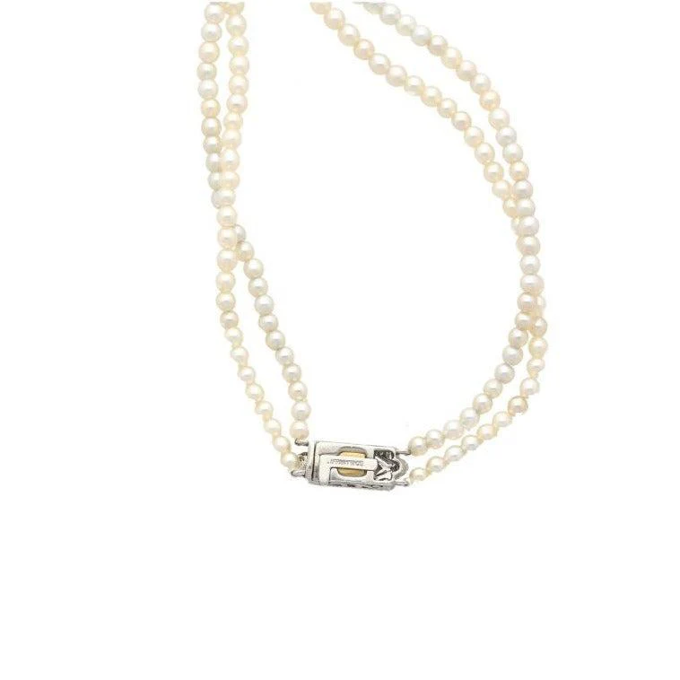 Vintage Tiffany & Co. Signed GIA Certified Natural Saltwater Pearl Two Strand Necklace
